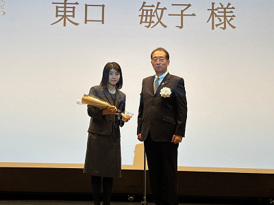 大阪商工会議所主催 第3回活躍する女性リーダー表彰(愛称:ブルーローズ表彰)に社員パートナーの東口敏子が受賞